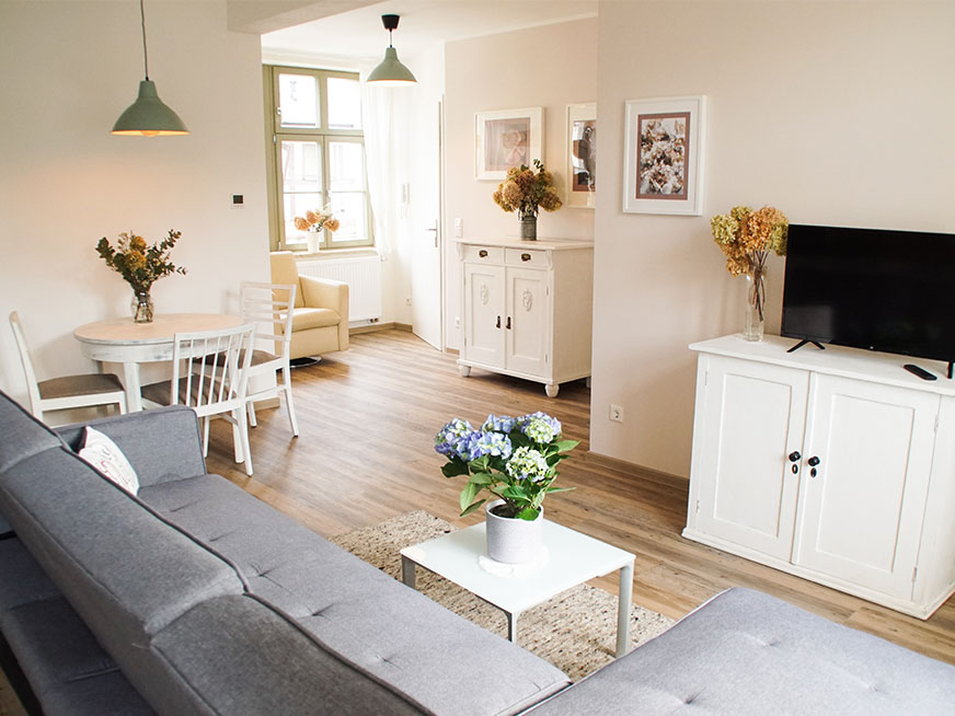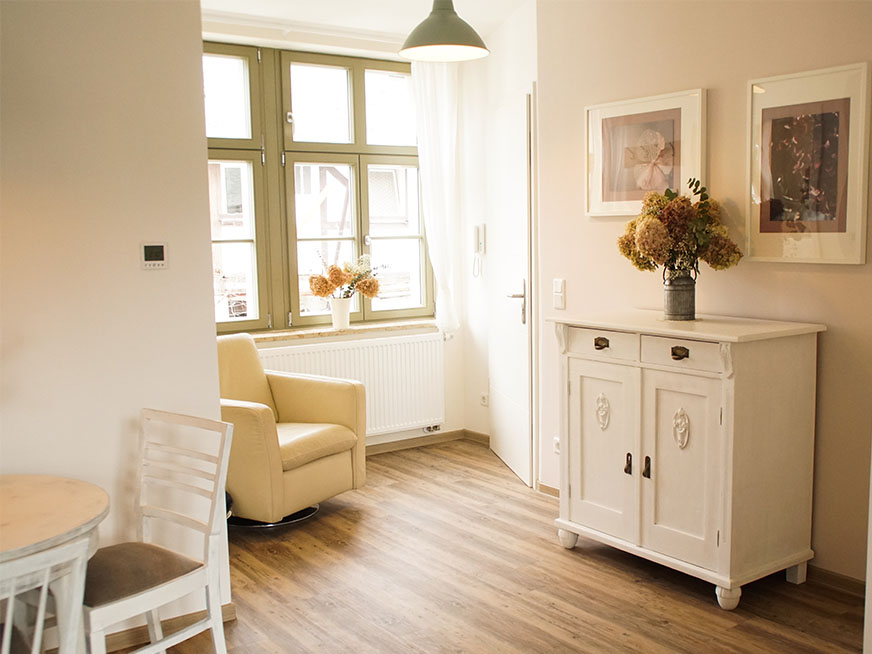 Im Hinterhof ist das prachtvolle Fabrikgebäude zum Leben erwacht, in dem sie, in der Ferienwohnung Hortensie stilvoll urlauben können. Stadtnähe und trotzdem himmlische Ruhe laden zum erholen und verweilen ein. Das lichtdurchflutete Ambiente lässt keine Wünsche offen.